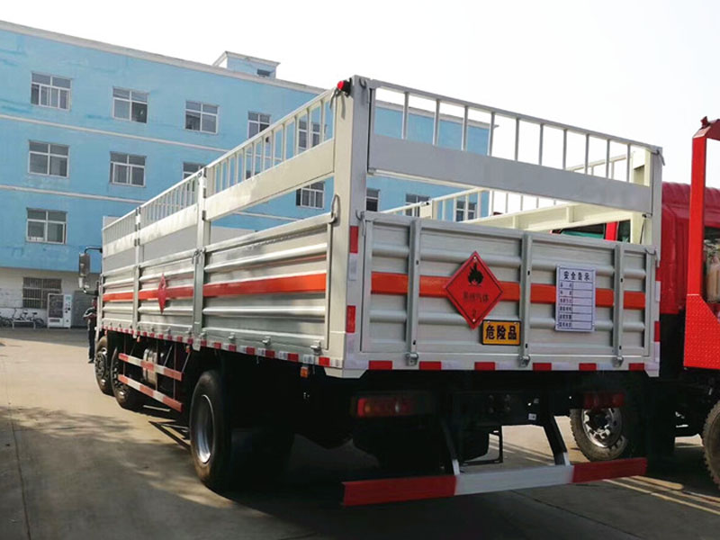 該車(chē)為危險(xiǎn)品貨物運(yùn)輸車(chē),用于運(yùn)輸具有**容器(瓶)包裝的易燃?xì)怏w(罐(瓶)裝壓縮氫、液化石油氣),類(lèi)項(xiàng)號(hào)為2.1,和非易燃無(wú)毒氣體(罐(瓶)裝二氧化碳,氧氣,氮?dú)?氬氣),類(lèi)項(xiàng)號(hào)為2.2.選裝貨箱側(cè)板、后門(mén)結(jié)構(gòu);選裝箱體結(jié)構(gòu).側(cè)防護(hù):材質(zhì)Q235,螺栓連接;后下防護(hù):材質(zhì)Q235,螺栓連接,斷面尺寸120X60mm,離地高度540mm;安裝具有衛(wèi)星定位功能的行駛記錄儀.裝有ABS,ABS型號(hào):3631010-C2000,生產(chǎn)廠家:東科克諾爾商用車(chē)制動(dòng)系統(tǒng)(十堰)有限公司.選裝前霧燈,駕駛室頂部裝飾燈為選裝件.僅選用前盤(pán)式制動(dòng)器,前置排氣管,子午線輪胎,限速裝置的底盤(pán),限速80km/h.